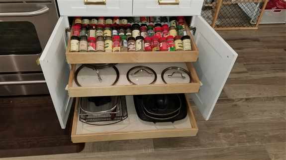 Our Custom slide out shelves and cabinet organizers will give you better organization, easy access to the back of your cabinets all while gaining 50% more storage capacity within your cabinets. We can also upgrade your cabinets and drawers to soft close!Product Images: